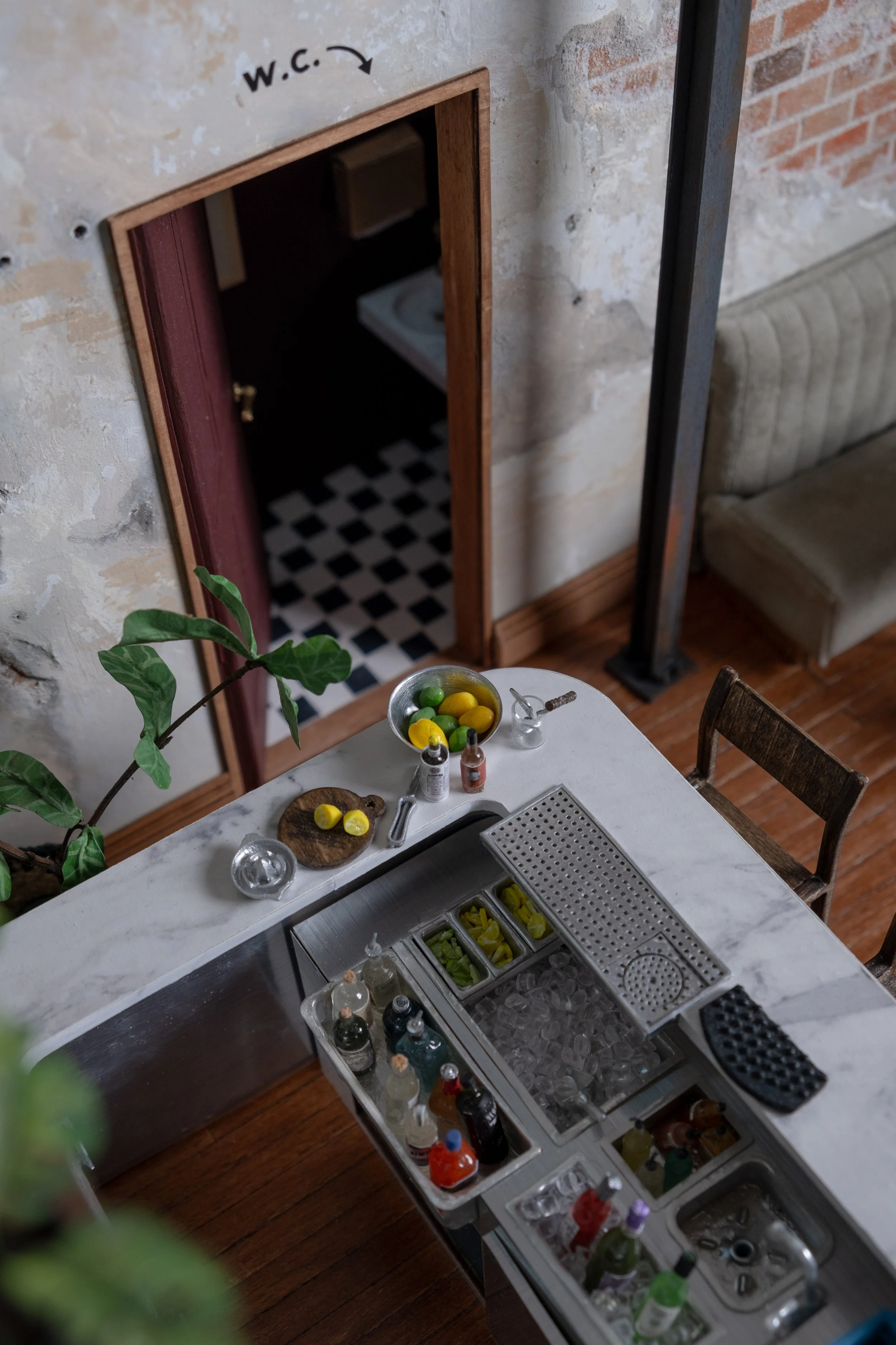 I created a miniature Bar/Restuarant that was inspired by the farm-to-table restaurants of Northern California, named after my dog, Pinto.